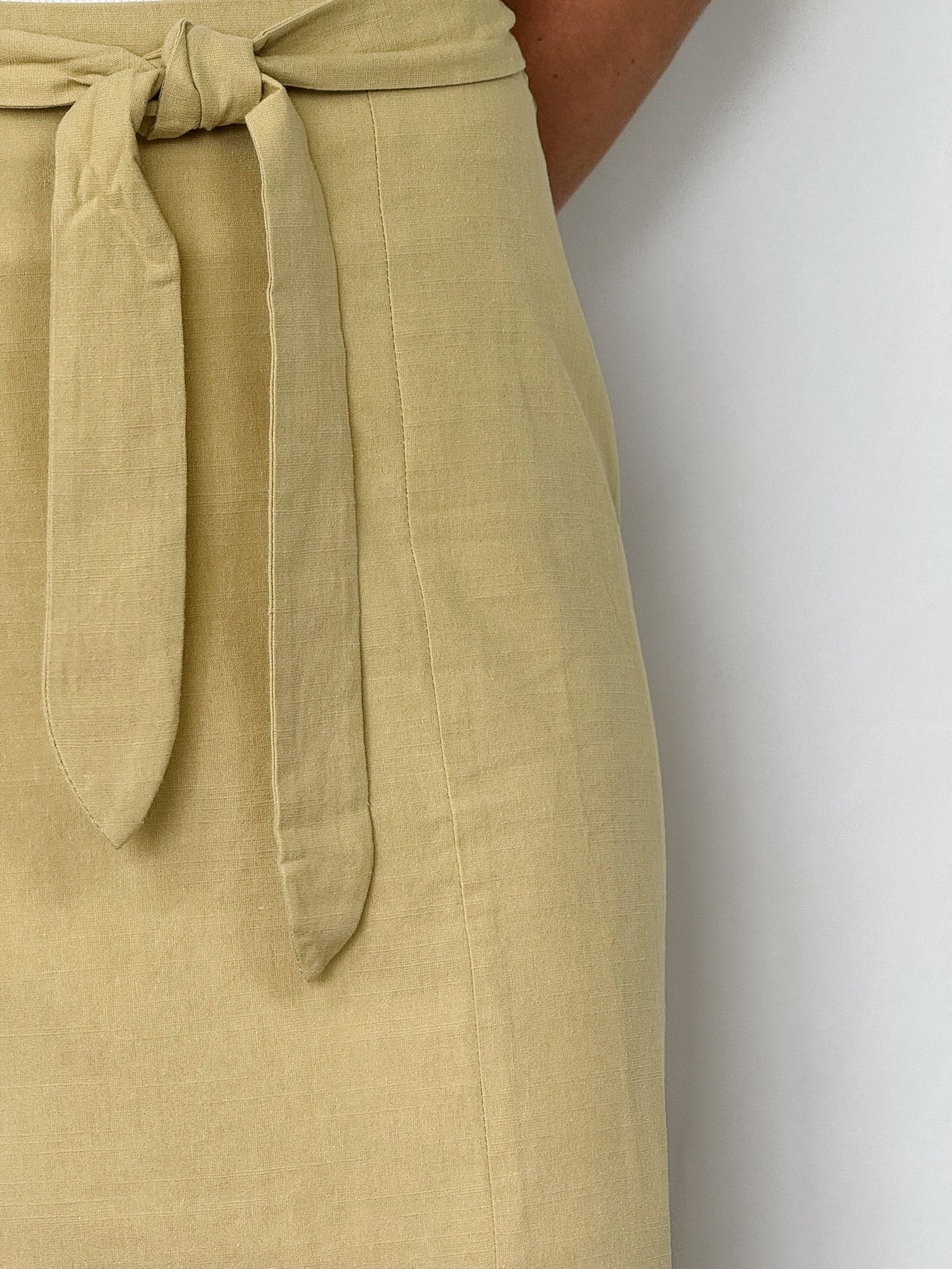 Chic and timeless, this midi skirt is a polished staple you'll loves styling again and again. Designed with a flattering high waits, adjustable tie, and side slit for just the right amount of ease, it moves effortlessly from workdays to weekends